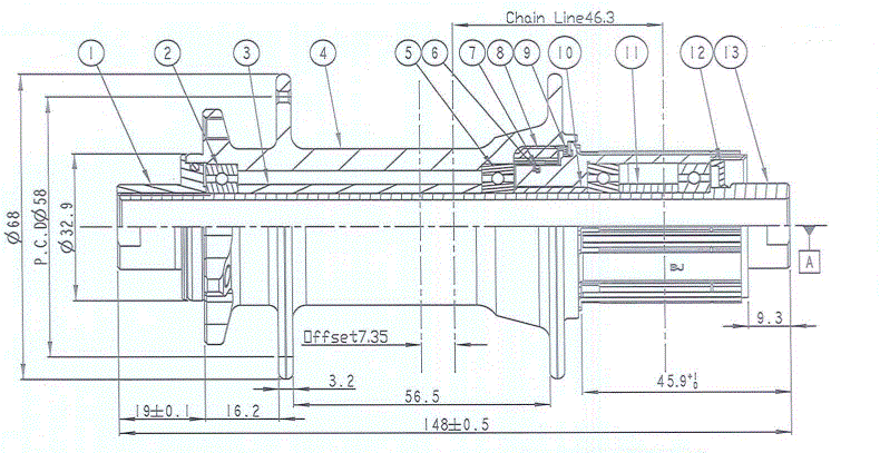 Zadný náboj D442SB-B12-S4S-11S boost, zliatina, eloxovaná čierna, s laserovaným logom N14, 32H/14G, Cr-Mo 12x148, podložka voľnobežky 11, D:45.9, zliatinová podložka voľnobežky 11 typu B2, s 9-rýchlostnou podložkou 1,5 mm, ložiská NBK, čierne bočné krytky, bez pevnej osky, OEM (CN)